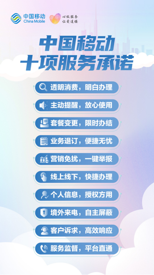 2025年7月,中国移动通信集团正式面向社会发布“三个一”服务举措,推出“十项服务承诺”。江西移动全体员工以高度的使命感和责任感,立足本职岗位、坚持客户视角,用心用情解决客户急难愁盼问题,履行企业责任,保障客户“四权”。