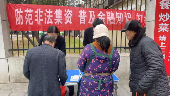 组织员工深入医院等人员密集场所,开展“摆摊设点”式宣传活动,现场设置宣传台,悬挂防范非法集资主题横幅,工作人员向过往群众尤其是老年群体,讲解非法集资的常见套路、电信诈骗的识别技巧,发放宣传资料,接受群众咨询;针对老年群体易被“养老投资”“高息返利”等骗局迷惑的特点,开展“守护养老钱”专项宣传;深入中心车站针对务工返乡人员,重点宣传“刷单返利”“虚假贷款”等诈骗手段,切实提升重点人群的反诈能力。