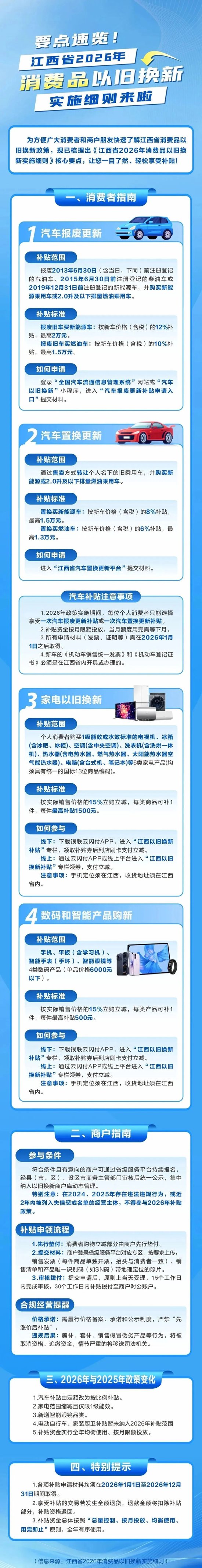 江西以旧换新补贴升级 抚州发布 03月05日 14:33 关注 确定不再关注此人吗 江西2026年以旧换新补贴升级 买车、换数码产品等最高省2万元 快来看看! ↓↓↓ 出品丨抚州市融媒体中心 分享文章到: