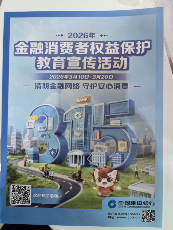 关注在2026年“3·15”国际消费者权益日期间,中国建设银行吉安鼎盛支行积极行动,紧紧围绕“金融消保在身边 保障权益防风险”主题,以营业网点为宣传主阵地,组织开展了一系列内容丰富、形式多样的金融知识普及宣传活动,着力提升社会公众的金融安全意识和风险防范能力,切实维护广大金融消费者的合法权益。