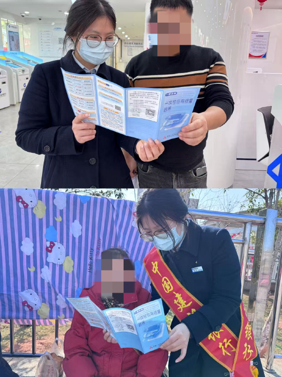 活动期间,网点精心打造“征信宣传驿站”。大厅LED屏滚动播放“珍惜信用记录,警惕征信修复骗局”“2026一次性信用修复政策免申即享”等标语,公众教育区摆放政策折页与案例手册,自助查询机旁安排专人引导,让客户在办理业务间隙便捷查询、读懂信用报告 。针对老年客户、新市民等重点群体,支行组建“党员宣传队”,通过一对一讲解、微沙龙等形式,用通俗语言解读征信核心知识。